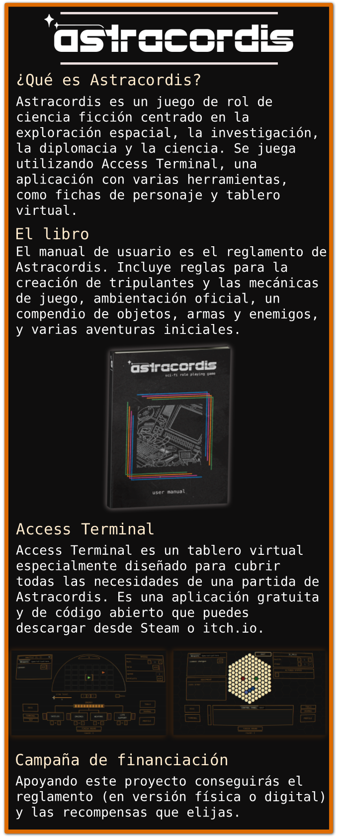 Astracordis Access Terminal es la aplicación oficial para el juego, donde encontrarás todas las herramientas que necesitas para tus partidas.